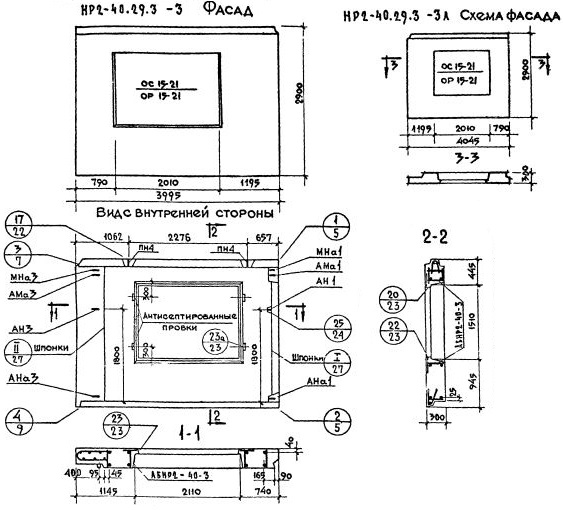 НР2-40.29.3-3л   Наружная стеновая панель рядовая по Серии 1.132-1.