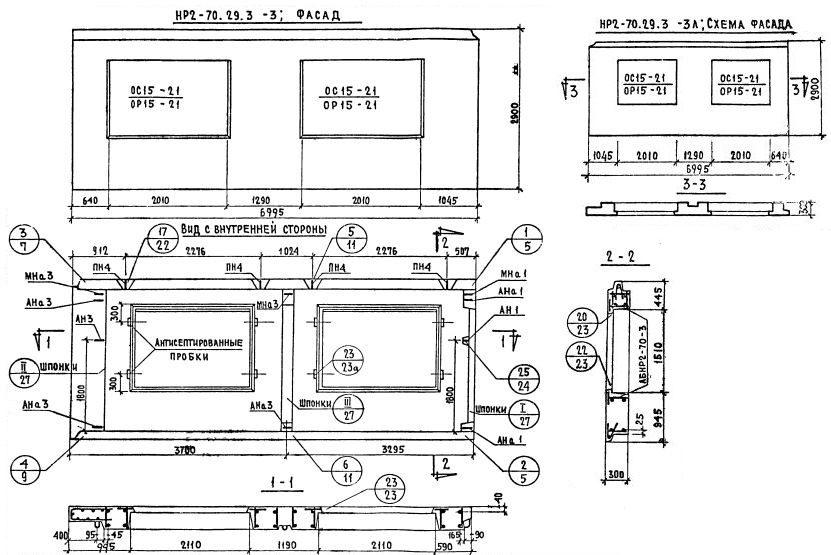 НР2-70.29.3-3 Наружная стеновая панель рядовая по Серии 1.132-1.